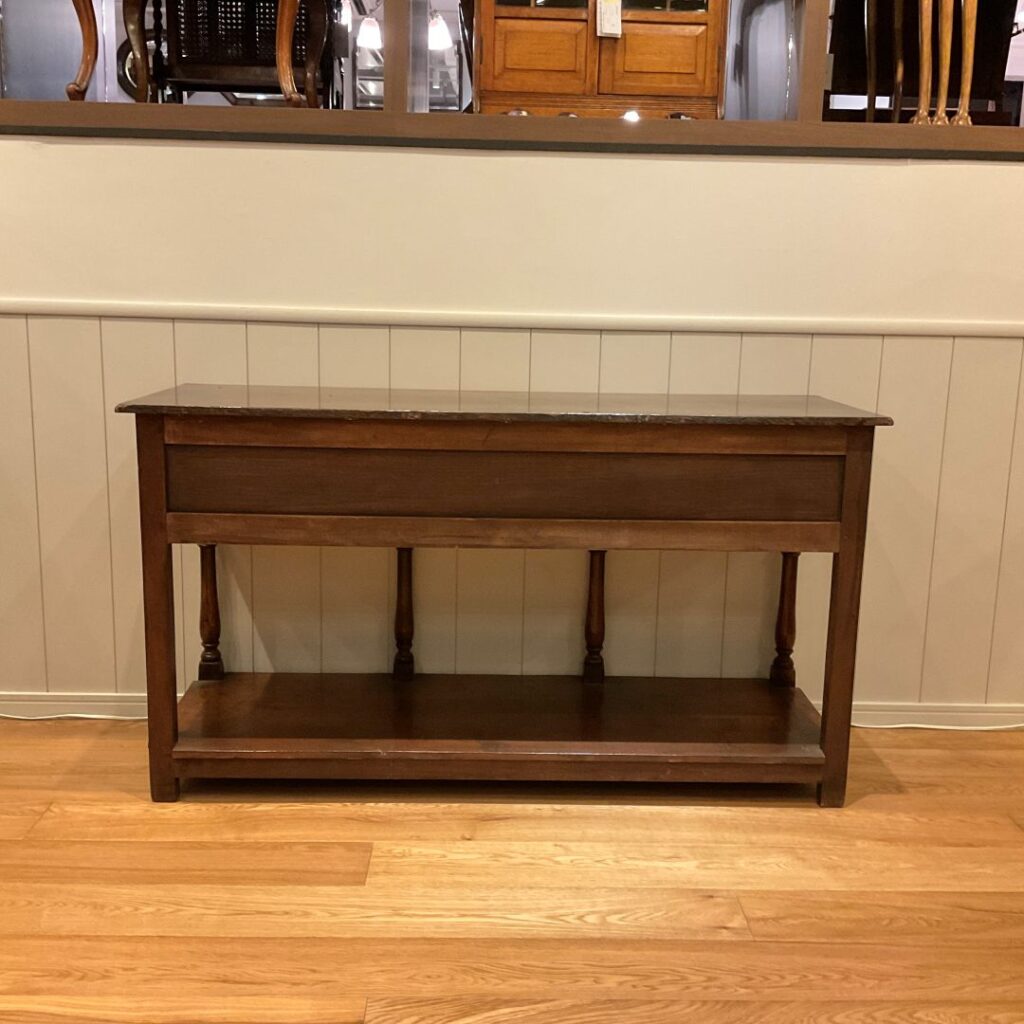 中央の脚部は挽き物細工。下台の空間にはかごなど置くのも素敵ですね