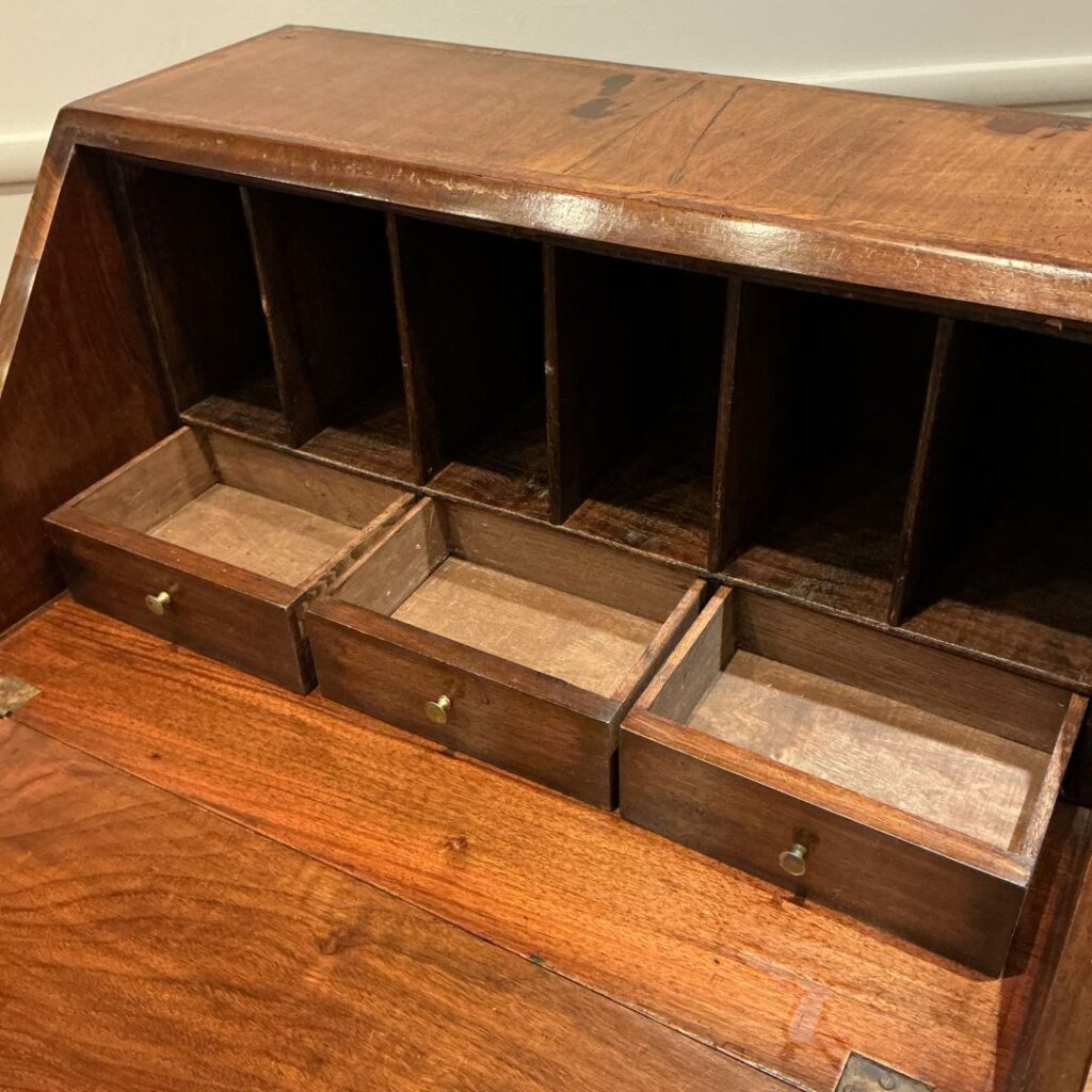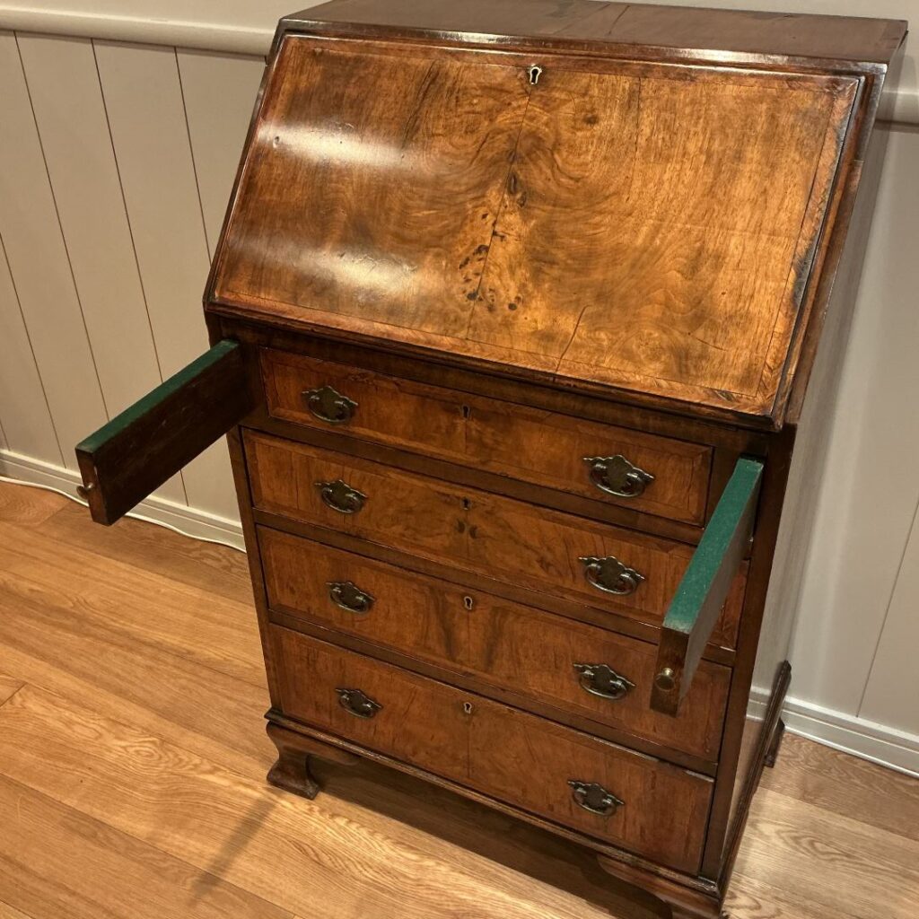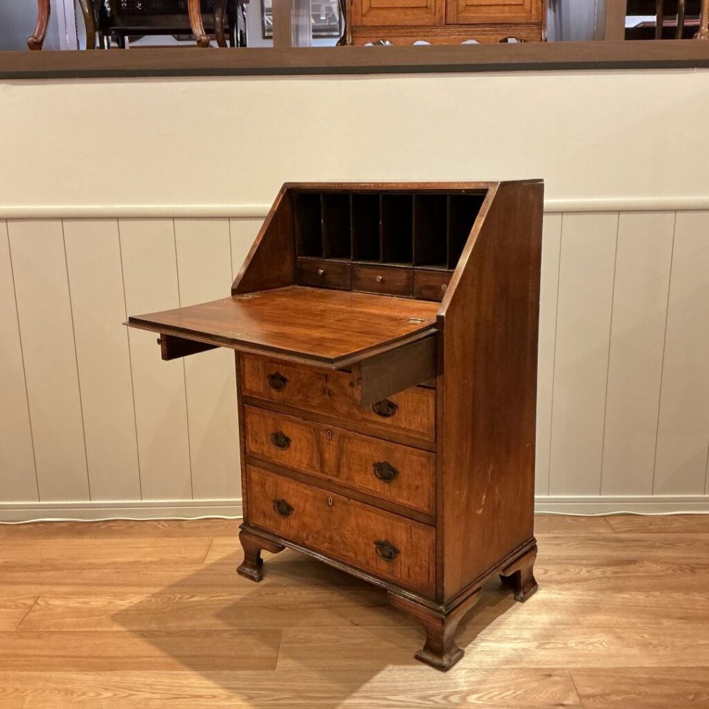 1920年代ジョージアンスタイルのウォルナットのライティングビューロー。
