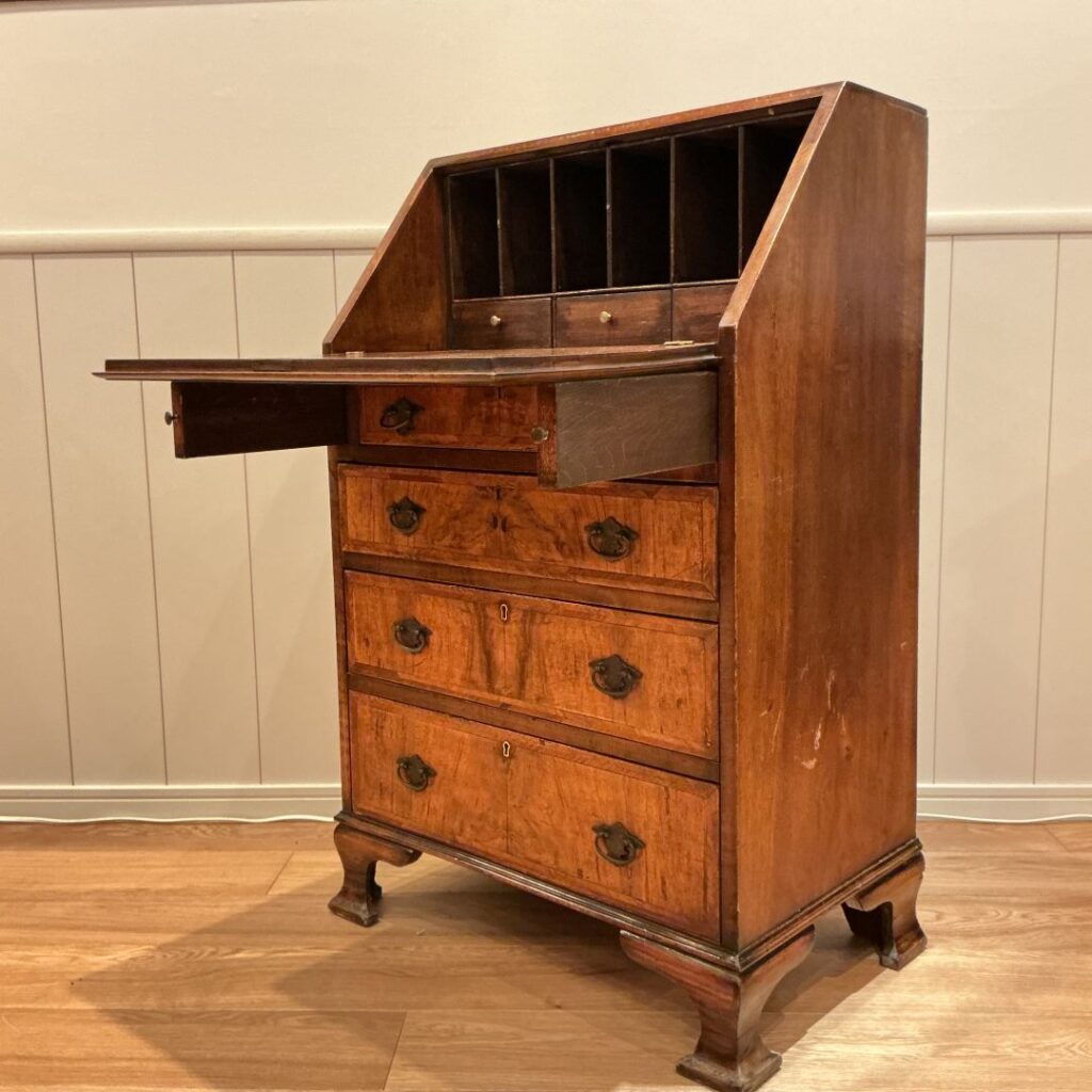 1920年代ジョージアンスタイルのウォルナットのライティングビューロー。