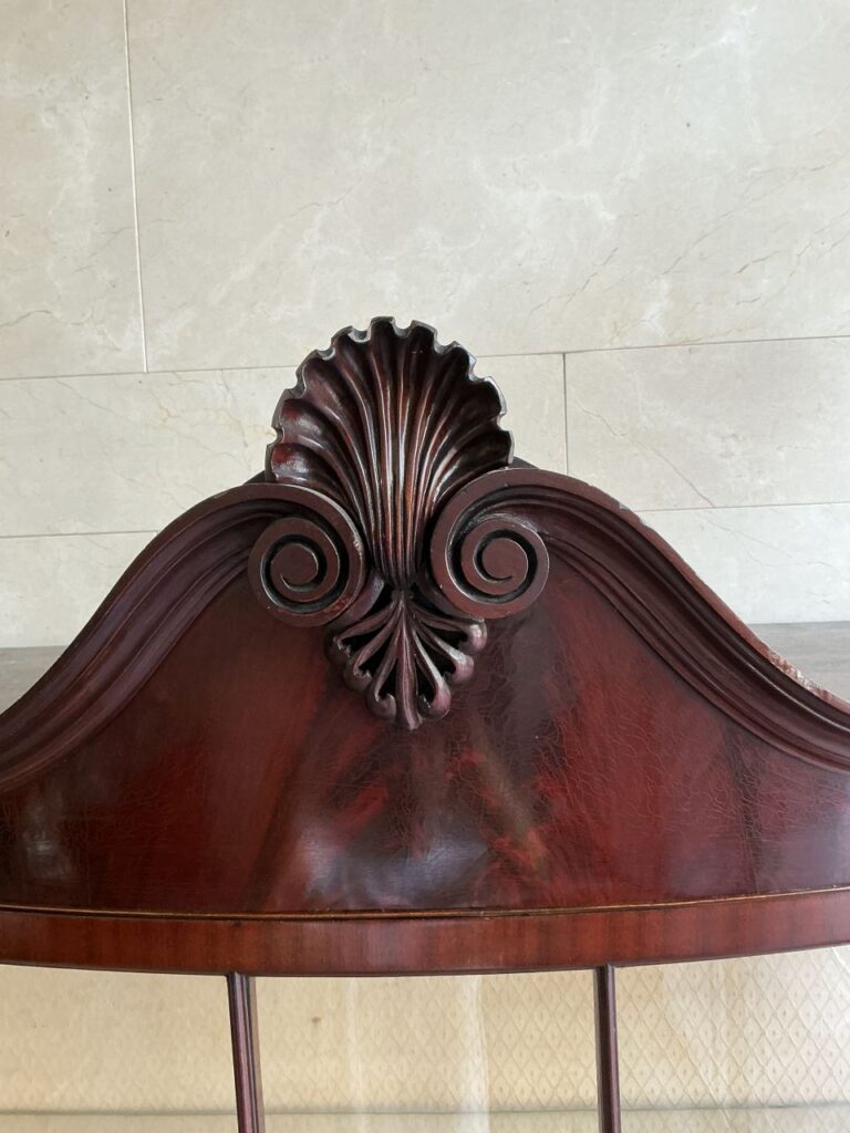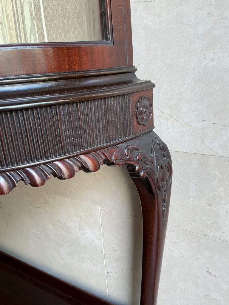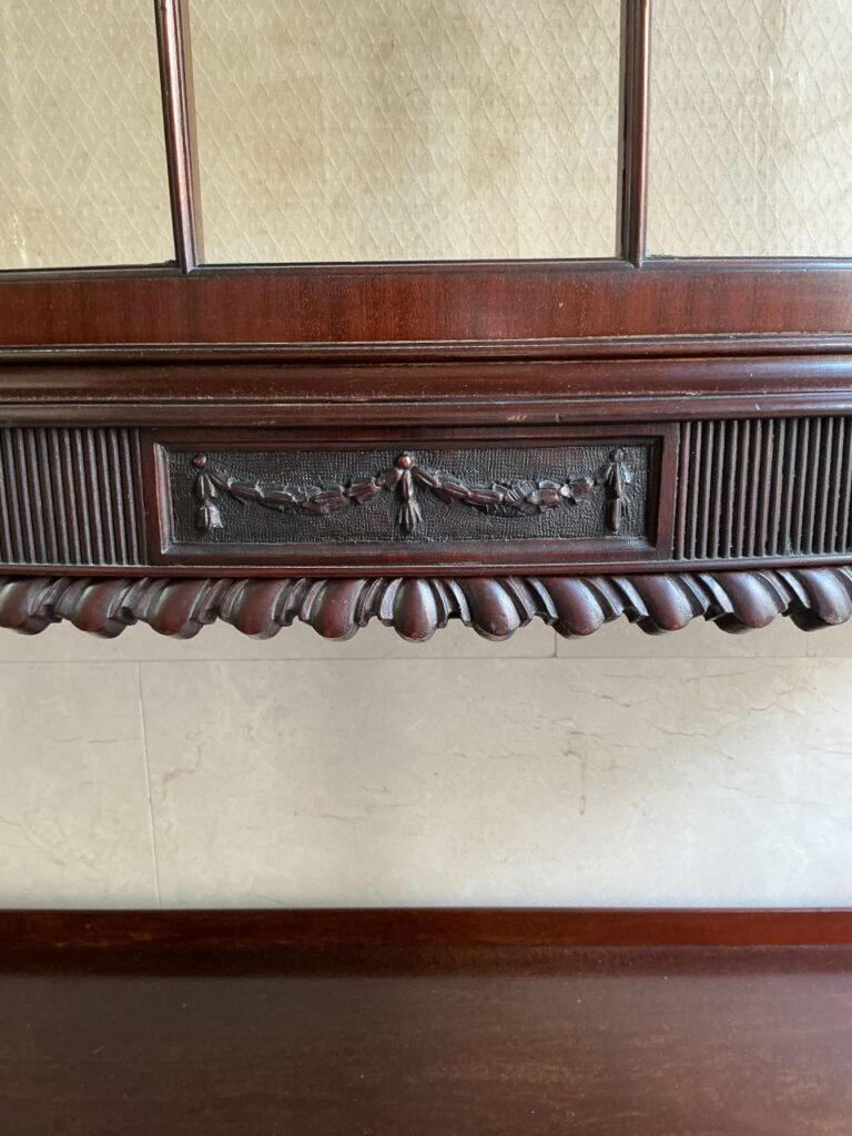 チッペンデールスタイルの特徴であるボール&クロウの脚のデザイン、ガードルニングなど華やかな彫刻の装飾が彩ります。