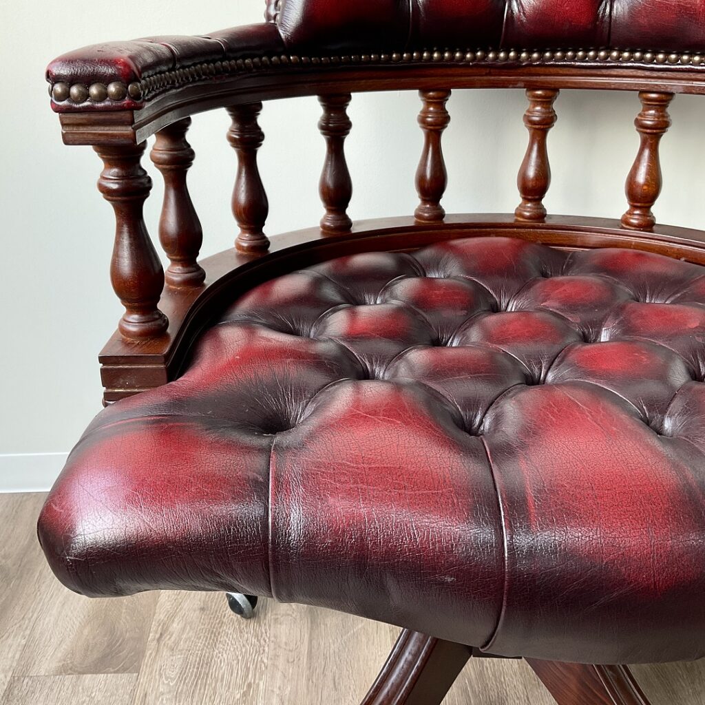 艶のあるマホガニーに使い込まれた深みのある肉厚なレザークッションは唯一無二の格好良さがあります。