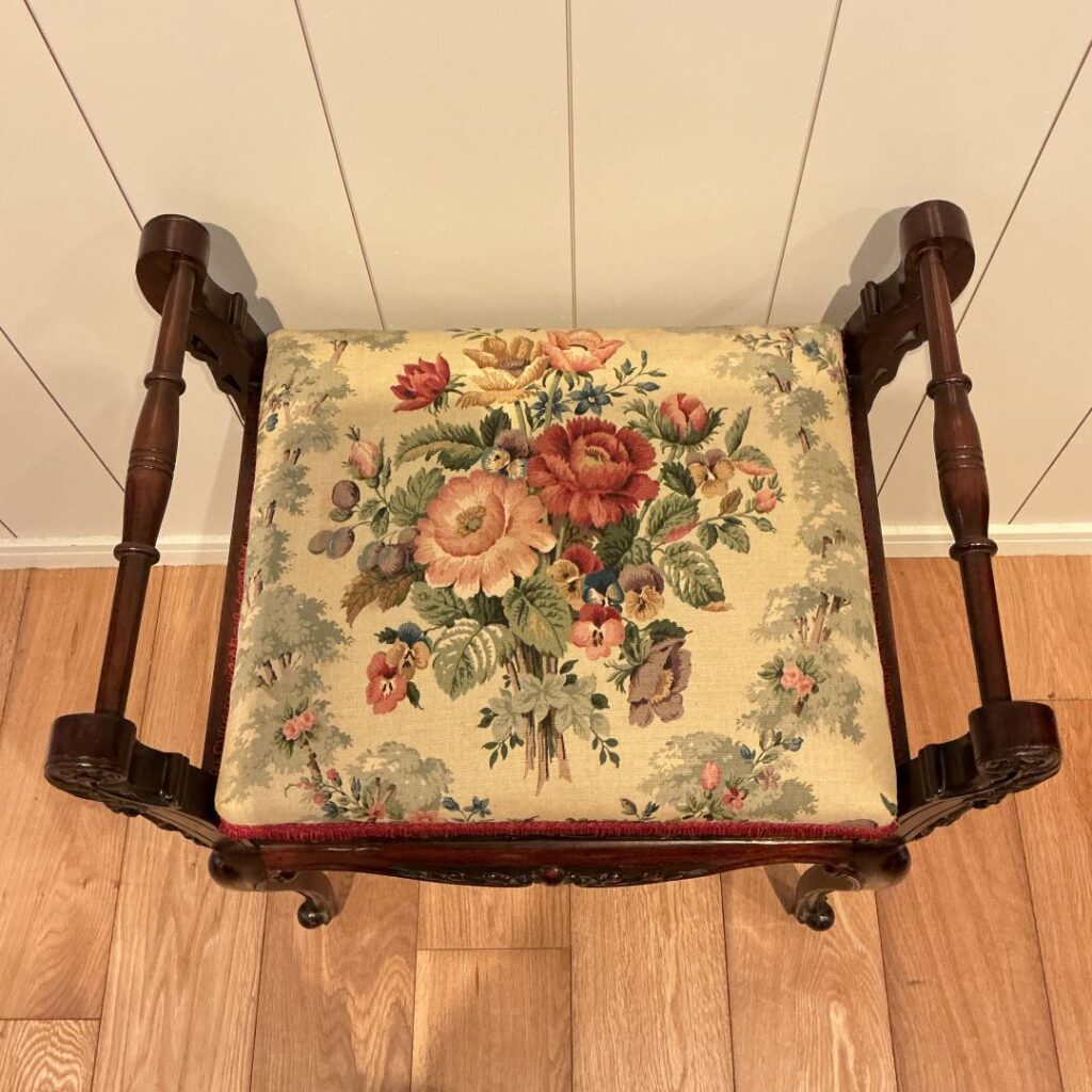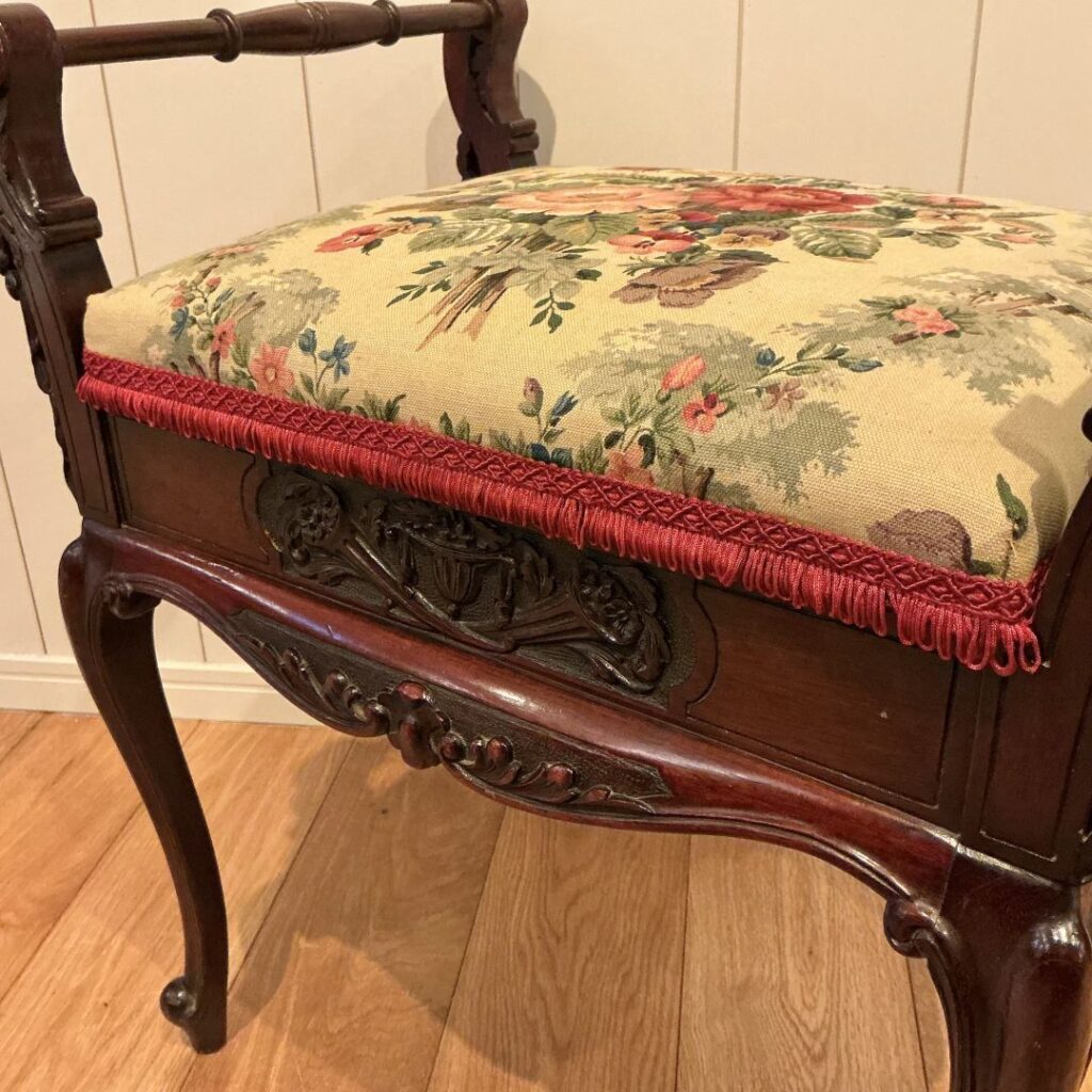 座面の幕板と持ち手部分のお花の装飾が華やかです。