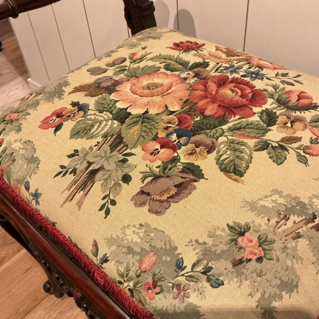 座面の華やかな生地がチェア本体の装飾とマッチして華やかです。
