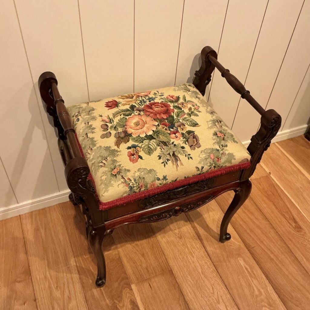 座面の幕板と持ち手部分のお花の装飾が華やかです。