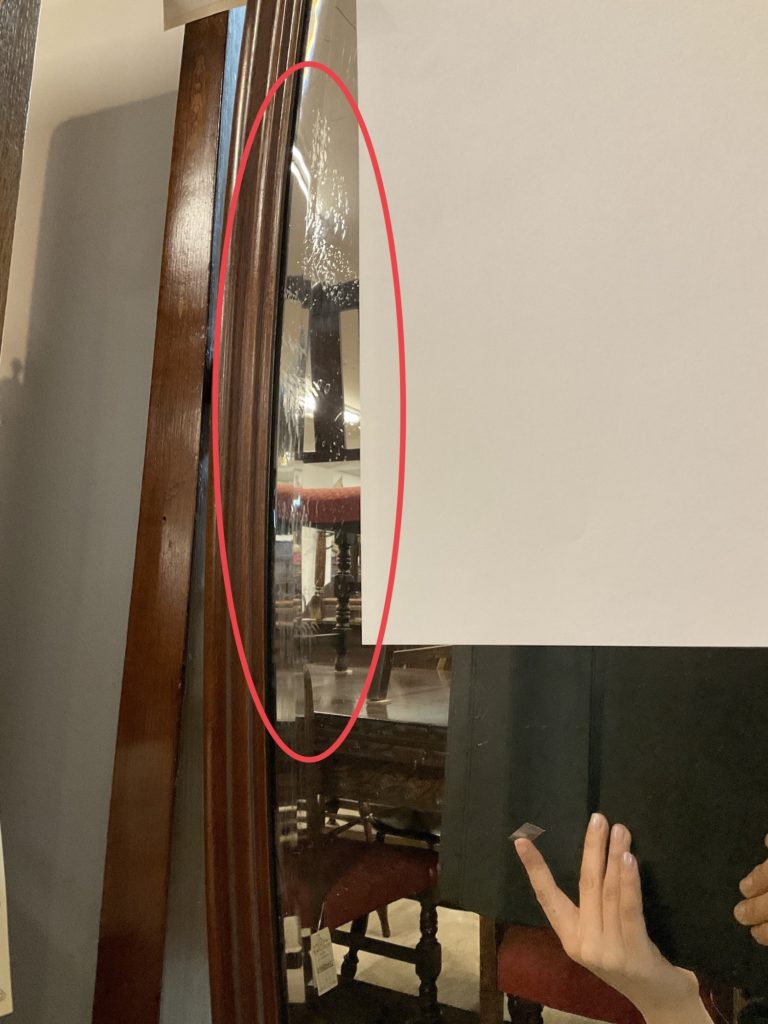 ミラーはアンティークなりの傷はございますが、そこまで気にならない程度かと判断します。
