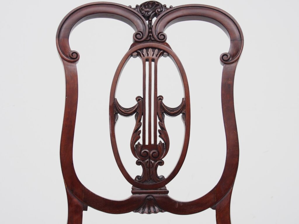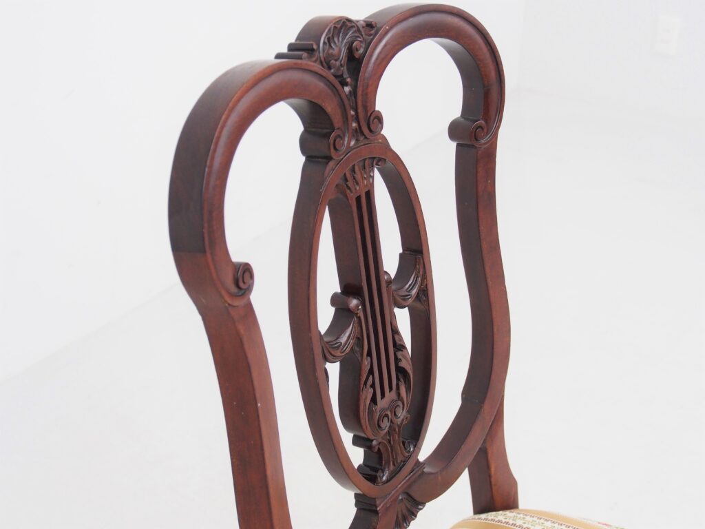 背もたれ中央はハープの彫刻が施されており、一つ一つの曲線がと大変美しく、お部屋を華やかな空間してくれます。