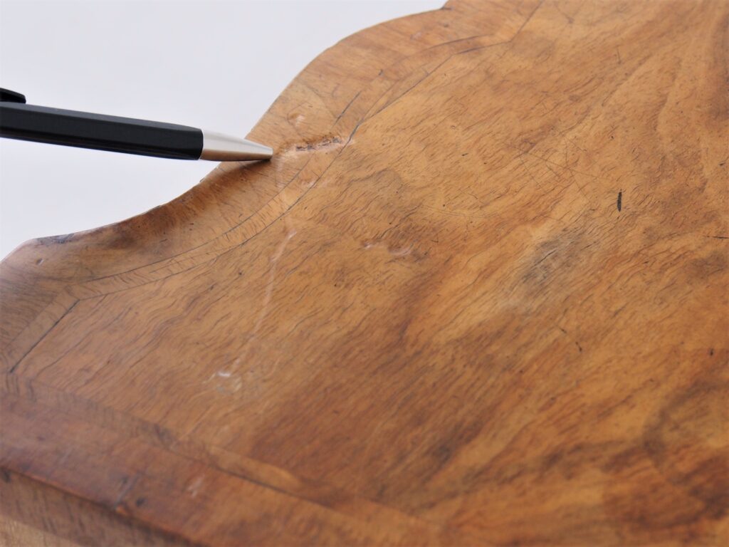 天板のフロントや引き出し下は緩やかな波型を描いたサーペンタインスタイルとなっています。